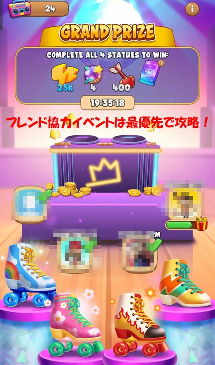 最重要イベントはフレンドと協力する「POWERPARTNERS」です。コンプリートすると、大量のエナジーを獲得できます。なるべく☆の数値が高レベルのフレンドにどんどん申請して、フレンド数もこの機会に増やしておくと良いです。