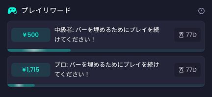 1日のプレイ時間が短いので楽ではありますが、プレイリワードが全然進みません汗