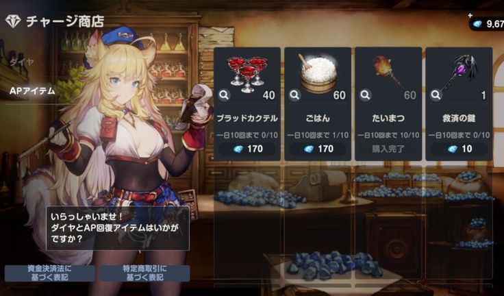 アリネスとクライの凸を進めるために酒場スカウトの更新(50ダイヤで訪れるキャラを変えられる)にも少しダイヤを使いました。