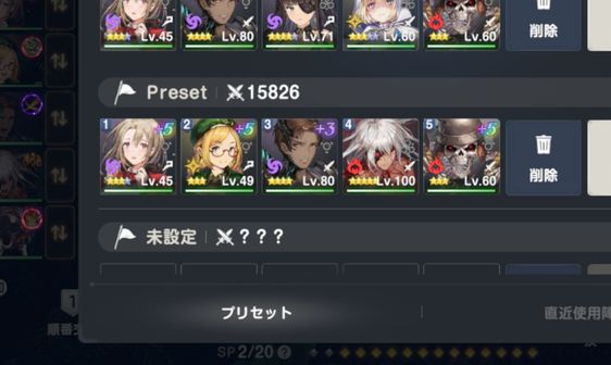よく使う編成と行動順はプリセットで登録しておくと便利です。