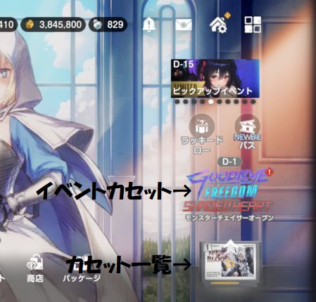 イベントへはホーム画面右下、カセット一覧の上のアイコンから入れます。