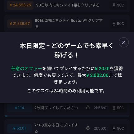 またアプリによっては24時間限定のプレイするだけで20円獲得キャンペーンもあるので、これを利用すると稼ぎやすいです。