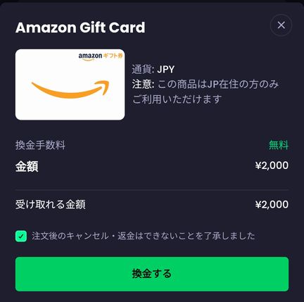 AmazonギフトやAppleギフト等が選べます。今回はアマギフを選択しました。