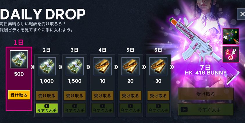 この7日目ログボで得たウサギのアサルトライフルを使えばさくさくミッションクリアが可能です。
