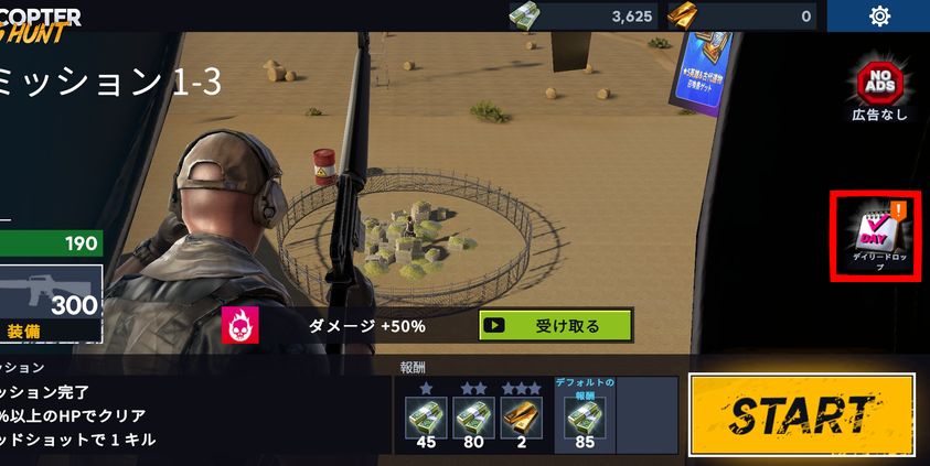 ミッション1-2クリア後に画面右のデイリードロップに入ります。