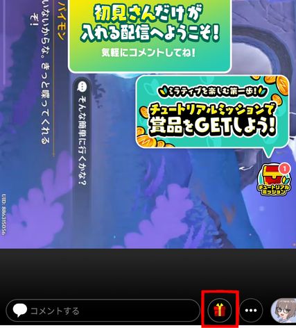 チュートリアルミッション歓迎の配信枠でコメントしたり、歌枠では配信者さんが歌唱中にキラコメ(弾幕)を送る事でコメント数が稼げます。