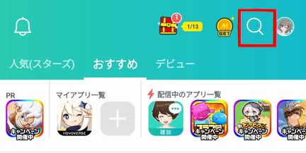普通に配信者さんと楽しくお話してもいいですが、コミュニケーションを積極的に取りたくない場合はホーム画面上部の検索欄からキーワード「チュートリアル」、「歌枠」等で配信検索しましょう。