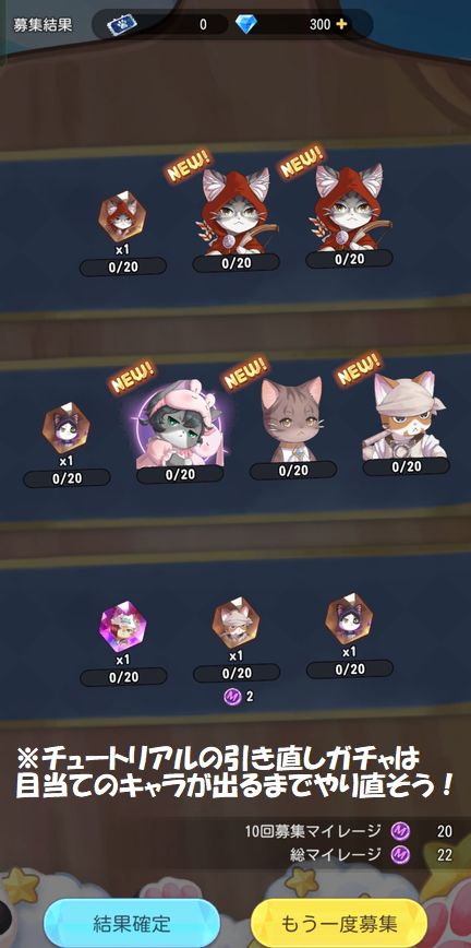 チュートリアルの引き直しガチャのキャラクターはタンク(盾)がおすすめです。私は範囲攻撃、防デバフ持ちタンクの「ターニャ」が欲しかったので出るまで約1時間粘りました(ヽ”ω`)