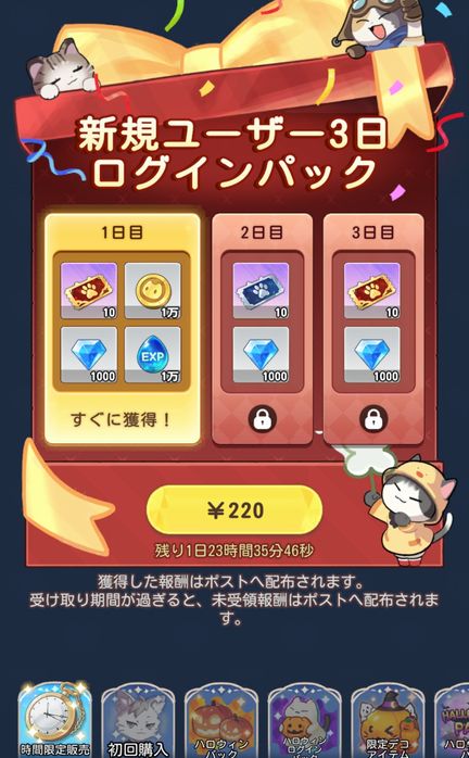 課金STEP消化の為「新規ユーザー3日ログインパック」を購入しました。