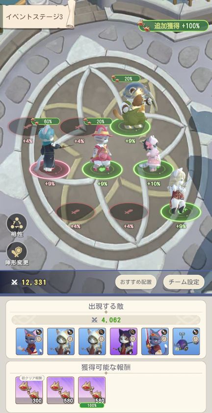 他の猫はレベル同期に入れてイベント(%ボーナス)、ピヨピヨ大乱闘やキャットツリー等で時々使用。