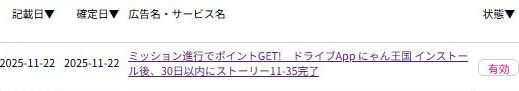 ハピタスのアプリドライブ内にて達成。(現在はmyChips系で掲載されています)