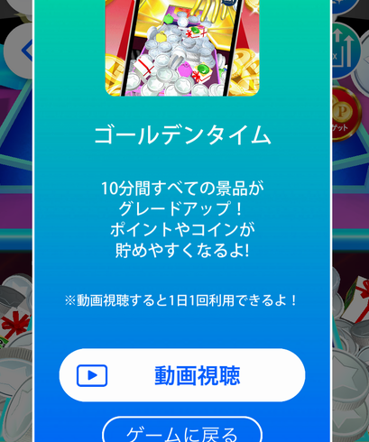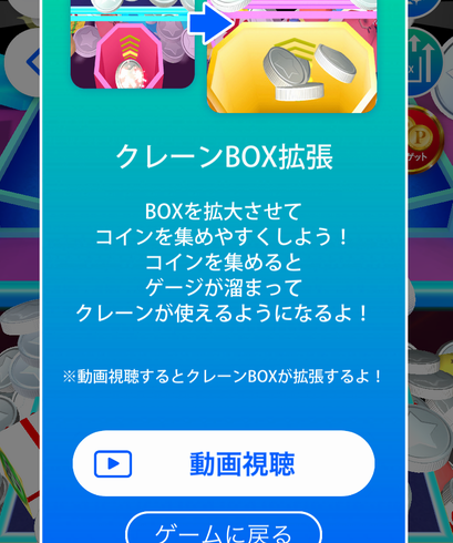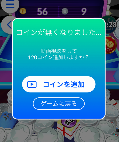 コインが無くなっても広告を視聴すれば120コインを無限に補充できるので、ひたすら画面を連打してコインを落としゲージを溜めましょう。